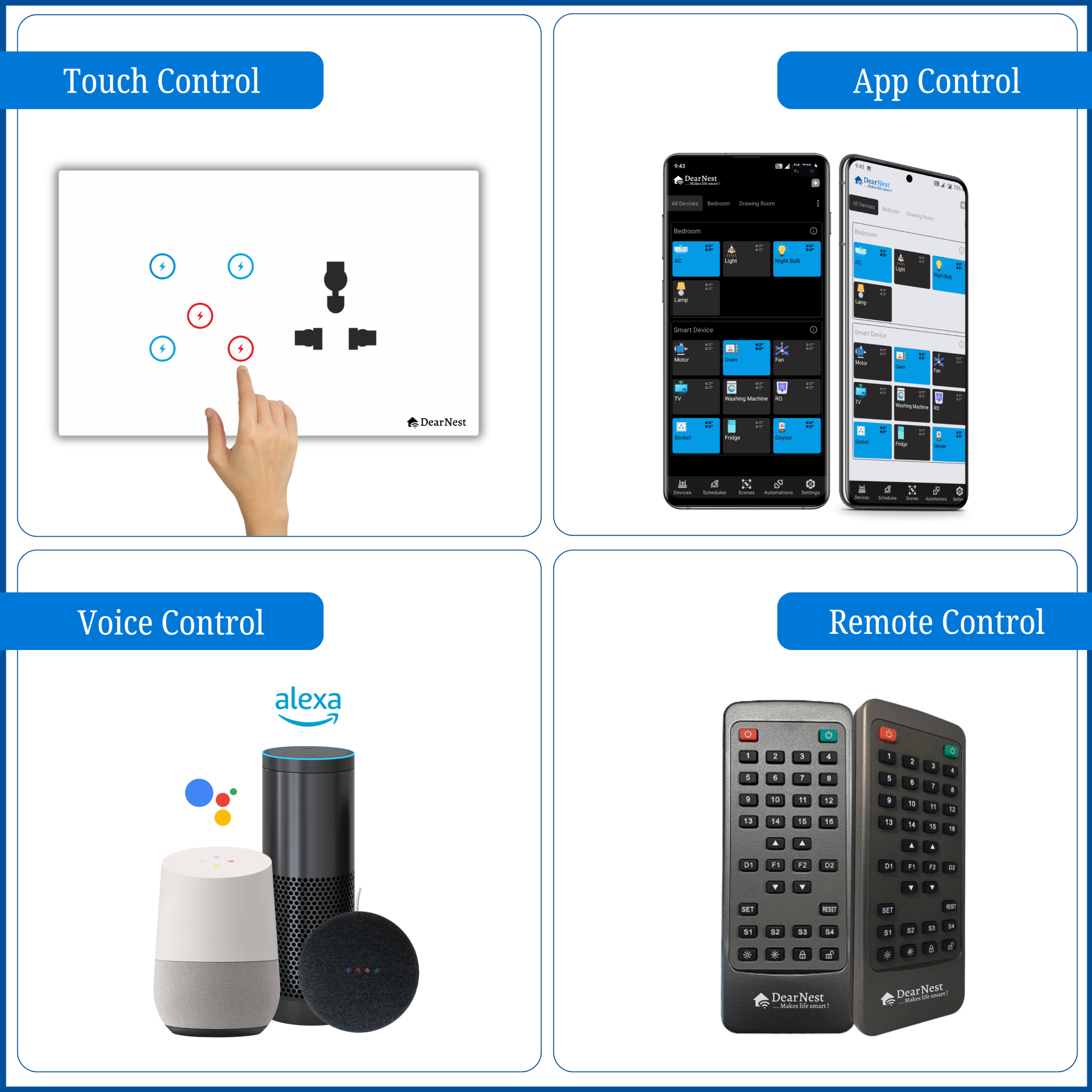 Wi-Fi allows the smart switch to connect to a home automation system or smart home network. This enables remote control and automation features via our all in one “Smart Home Automation App” or via voice commands using Google Assistant or Amazon Alexa.