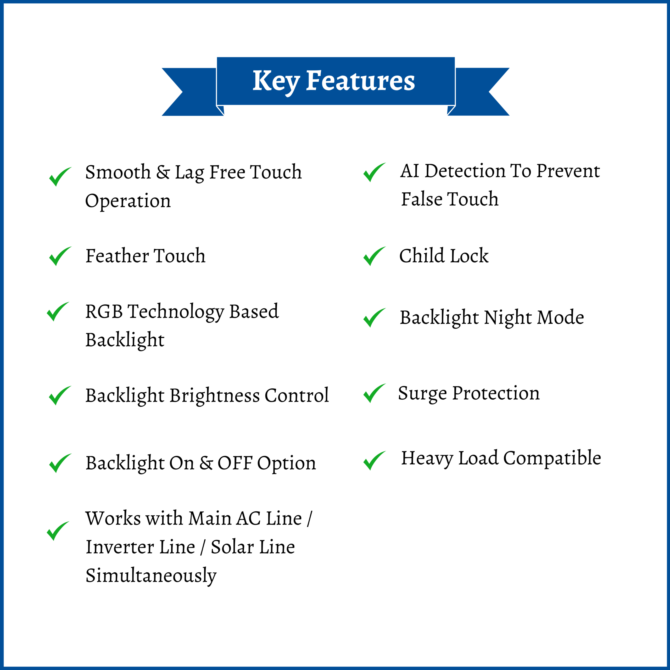 Each touchpoint on the panel corresponds to a switch that controls an appliance/load connected to it. These switches are rated for standard household voltage (e.g., 110-240V AC).