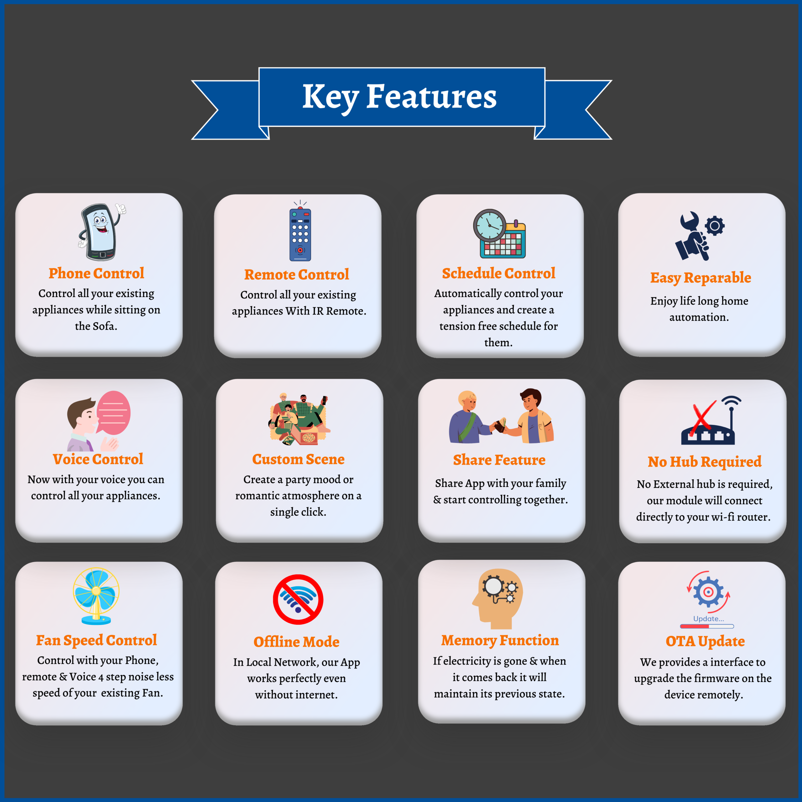 Our advance technology allows users to control various electrical appliances and lighting systems in a home or commercial space.
