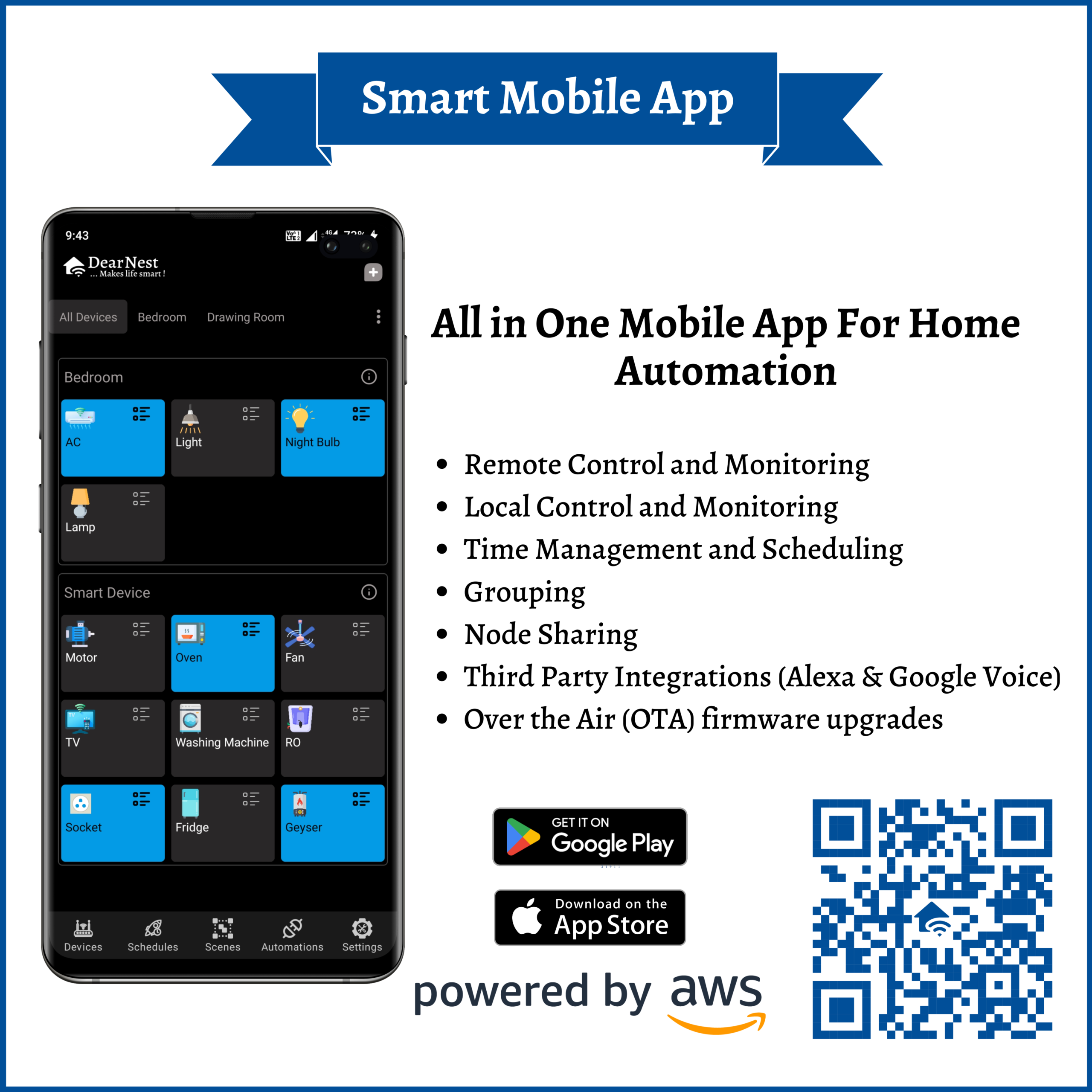 App Control: Compatible with our “Things Alive” iOS and “DearNest” Android apps that allow customization, control, and monitoring of the smart switch functions.